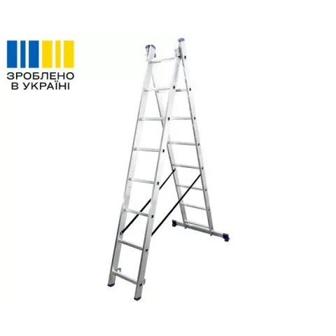 алюмінієва двосекційна драбина DUOMAX VIRASTAR 2x8 сходинок розкладається в декілька робочих позицій;