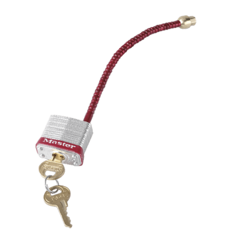 Навісний замок 7C5RED для блокування декількох автоматичних вимикачів з гнучким сталевим тросом. Дужка у вигляді тросу для блокування вимикачів, розміщених в ряд.