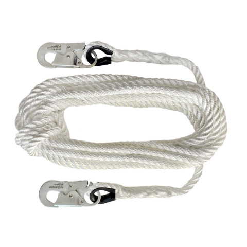 Фал спасательный канатный изготавливается из полиамидного каната. Используется с предохранительными поясами при выполнении работ, где исключено повреждение фала об острые края строений, а так же может использоваться при выполнении электромонтажных работ, где необходимо применение фала из изолированного материала.