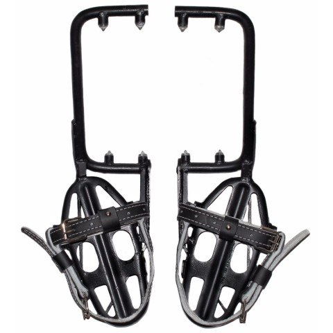 | Матеріал: | лази – сталь із лакофарбовим покриттям, шипи – сталь з термічною обробкою, ремені кріпильні – із двох цілих кусків шкіри юфтової і шкіри сиром’ятної. |