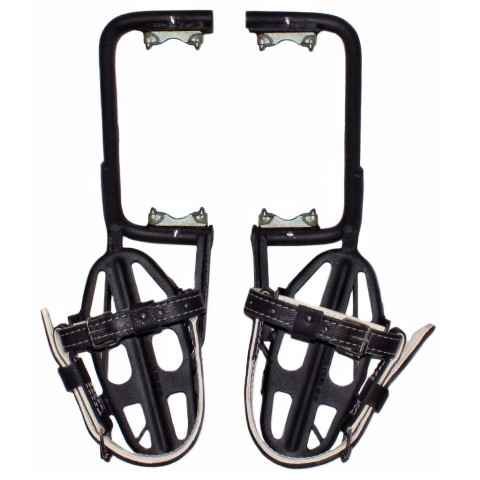 лази – сталь з лакофарбовим покриттям, шипи – сталь з термічною обробкою, ремені кріпильні – із двох цілих кусків шкіри юфтової і шкіри сиром’ятної. |