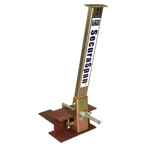 Стійка з основою, що кріпиться на двотаврову балку, застосовується для настройки власної горизонтальної системи страхувальних тросів SecuraSpan™.