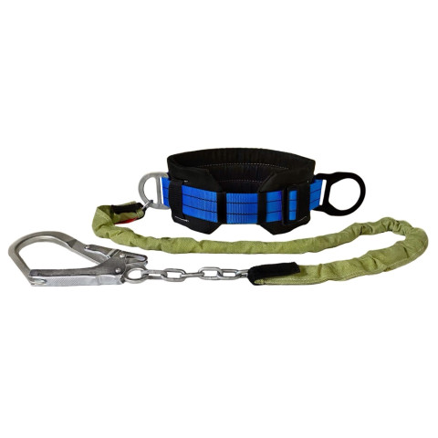 Пояс монтажний даної моделі комплектується ланцюговим стропом і великим карабіном з шириною розкриття 55мм. Пояс застосовується під час проведення вогневих робіт на висоті, а також під час роботи, де можливо термічне чи механічне пошкодження стропу. Ланцюговий строп виготовлений із сталевого ланцюга з захисним антикорозійним покриттям.