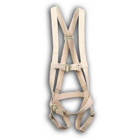 Конструкція включає наплічні та настегнові лямки, поясний ремінь і нагрудну лямку, а також задню точку зачеплення у вигляді петлі для кріплення страхувального каната.