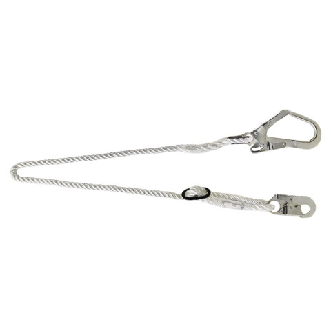 Строп канатный изготавливается из полиамидного каната, имеет регулятор длины. Используется с предохранительными поясами при выполнении работ, где исключено повреждение стропа об острые края строений, а так же этот строп может использоваться при выполнении электромонтажных работ, где необходимо применение стропа из изолированного материала.