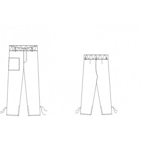 Штани з притачним розширеним утеплений поясом, накладним карманом, тасьмою для зав'язування штанів по низу, шліцами внизу крокових швів.