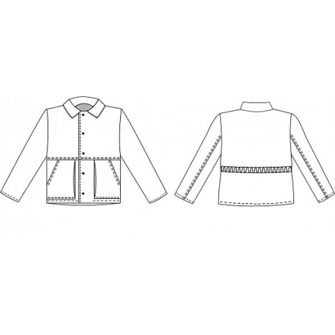 Рукав втачний двошовний. Полочки з підрізом в області талії.