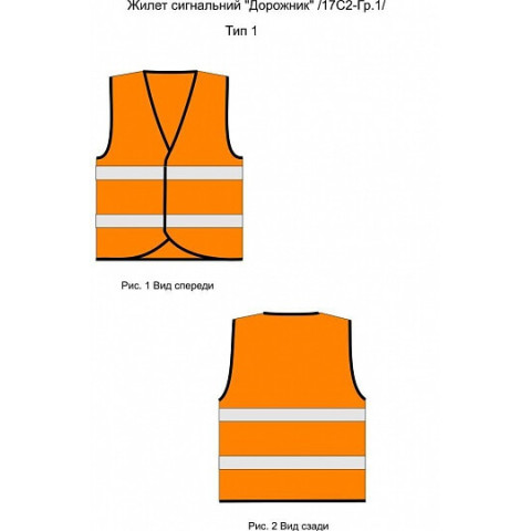 Жилет з центральною бортовою застібкою на текстильну стрічку, V-подібним вирізом горловини, двома світловідбиваючими горизонтальними смугами 5 см,.