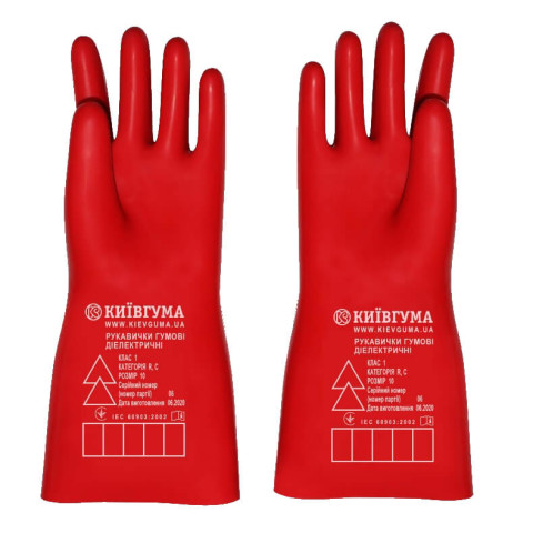 Рукавички діелектричні Київгума безшовні клас 1 до 7,5 кВ