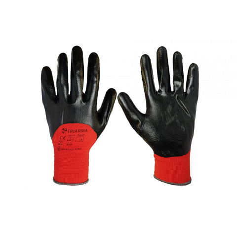 Рукавички TRIARMA нейлонові з неповним нітрильним покриттям NY1355-R/BLK